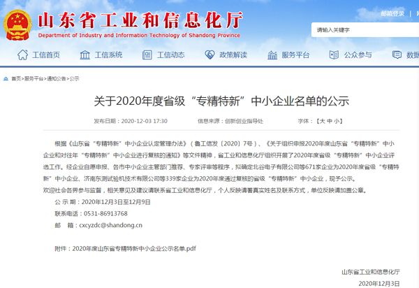 根據(jù)《山東省“專精特新”中小企業(yè)認定管理辦法》(魯工信發(fā)〔2020〕7號)、《關于組織申報2020年度山東省“專精特新”中小企業(yè)和對往年“專精特新”中小企業(yè)進行復核的通知》等文件精神,省工業(yè)和信息化廳組織開展了2020年度省級“專精特新”中小企業(yè)評選工作。經(jīng)主管部門推薦、專家評審等程序,確定我公司為2020年度省級“專精特新”中小企業(yè)。